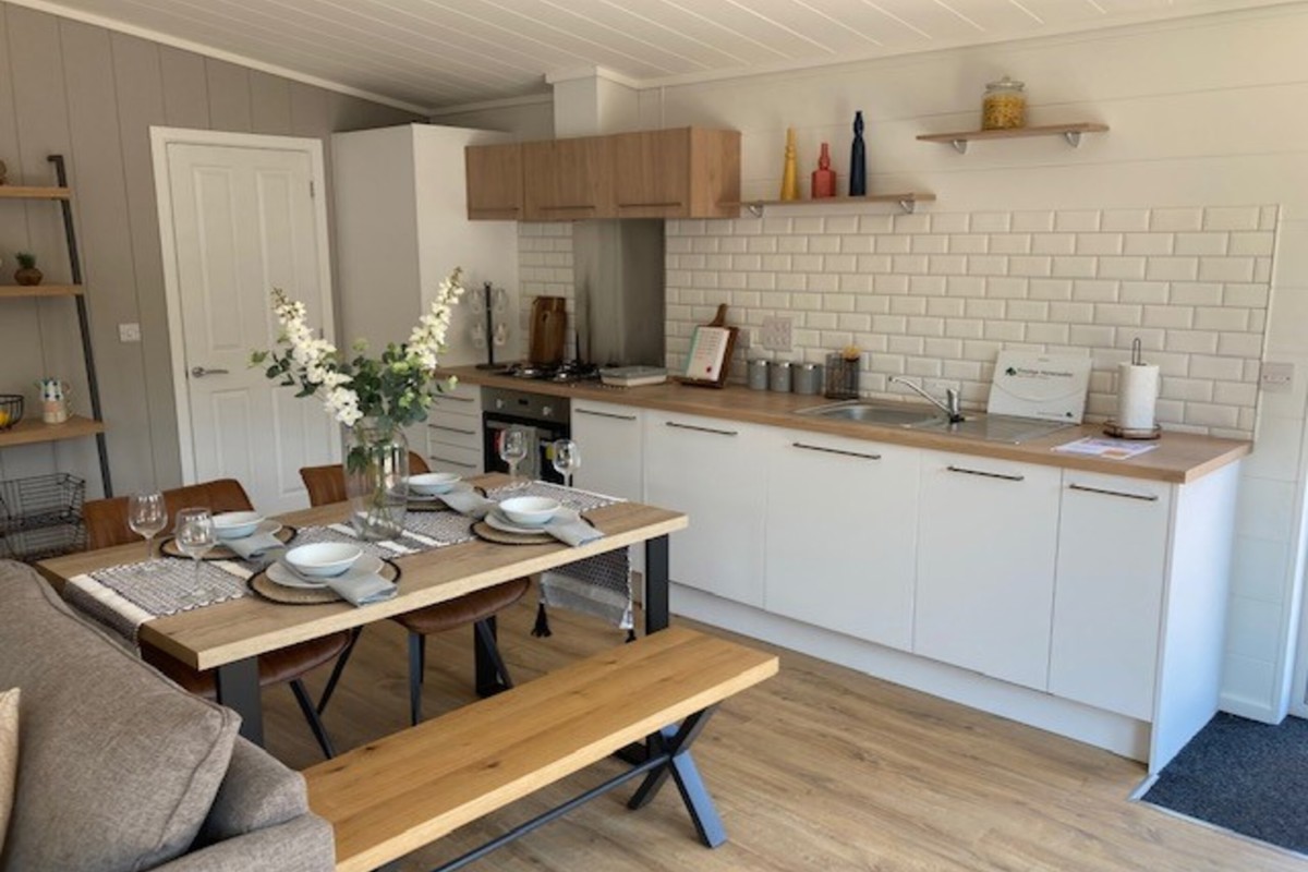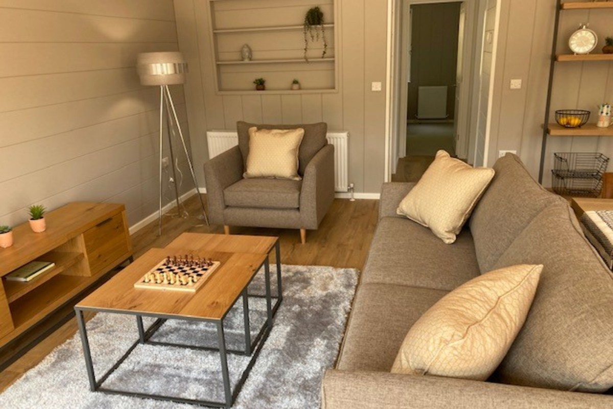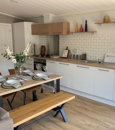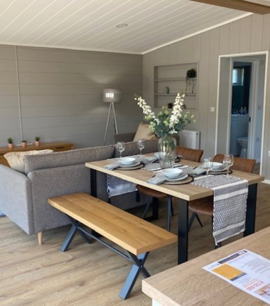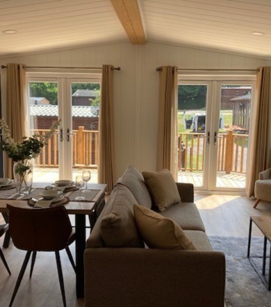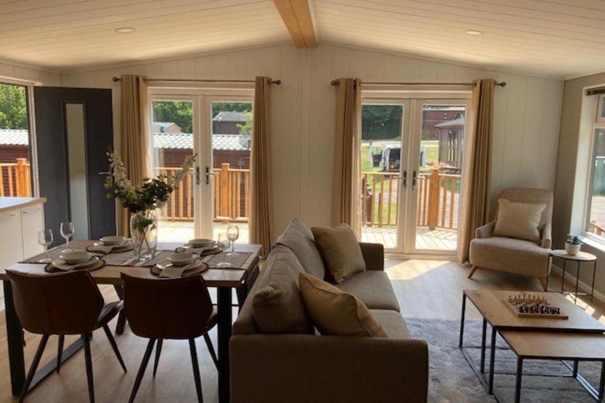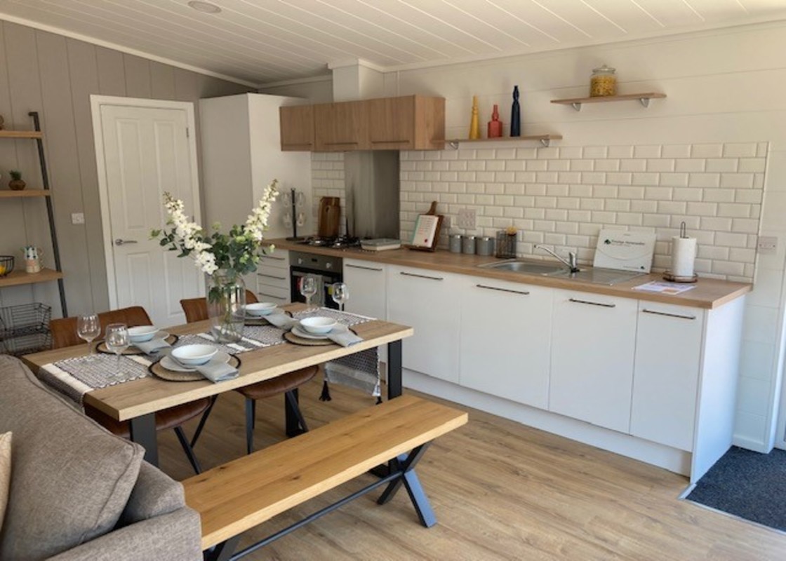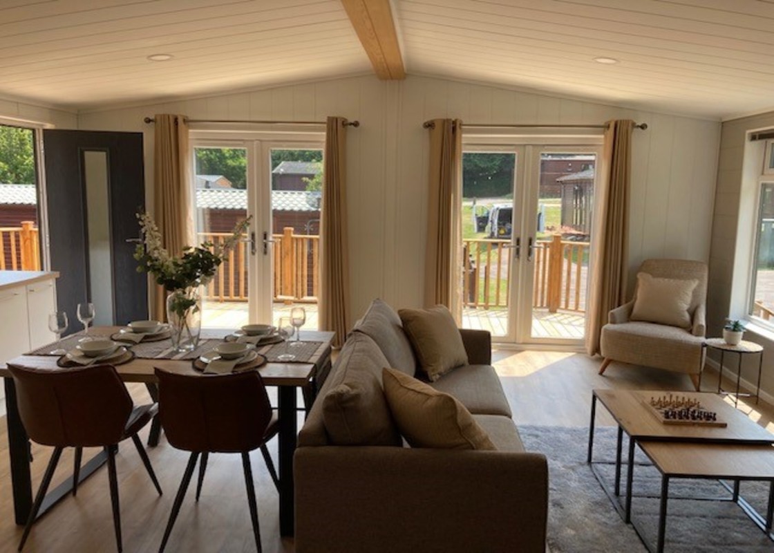 Step into this stunning, brand new lodge and enjoy the perfect balance of modern design and natural beauty. From the decking area, you can enjoy the fresh air and countryside while dining outdoors or sitting with a drink.