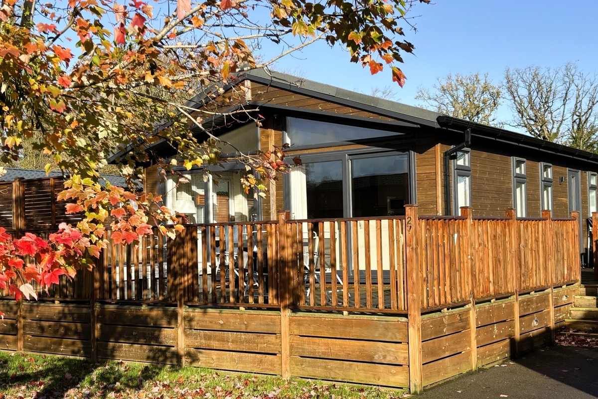 The Wessex Contemporary is a preloved luxury lodge that blends modern design with plenty of character, all set within a tranquil natural landscape. A generous decking area with a sunken hot tub creates the perfect spot to unwind, while two sets of patio doors at the front open up the living space and welcome in the fresh air.
